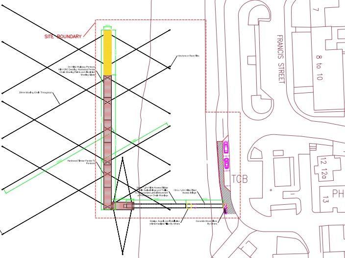 Location: Entry to the bridge will be close to the top of the existing slipway. The entry point will be gated and access to the pontoon will be via a daily or annually generated code.